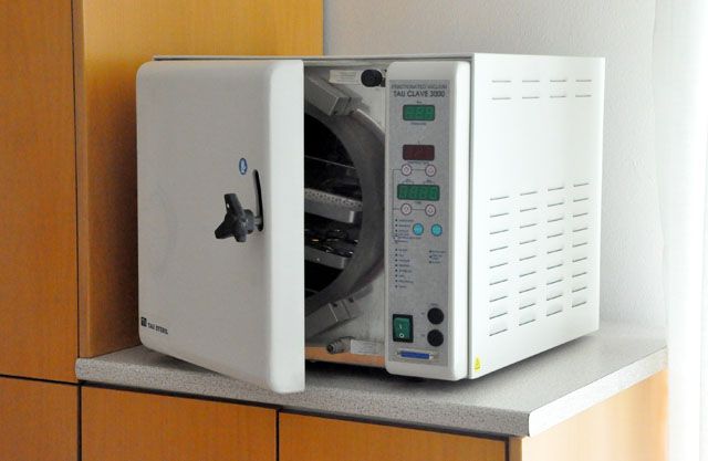 Η επαναλαμβανόμενη διαδικασία αποστείρωσης των εργαλείων περιλαμβάνει λουτρό υπερήχων με ειδικά απολυμαντικά υγρά (για τον καθαρισμό και την απολύμανση) και αυτόκαυστο κλίβανο (για την αποστείρωση), εξασφαλίζοντας αποτελεσματικά την ασφαλή χρήση στον ασθενή.